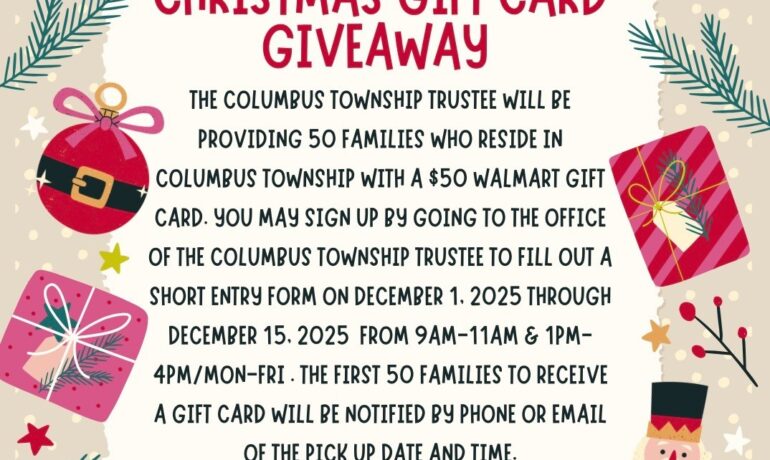 Christmas Gift Card Giveaway – Columbus Township Trustee The Columbus Township Trustee will be providing 50 families who reside in Columbus Township with a 50 dollar Walmart gift... Read More